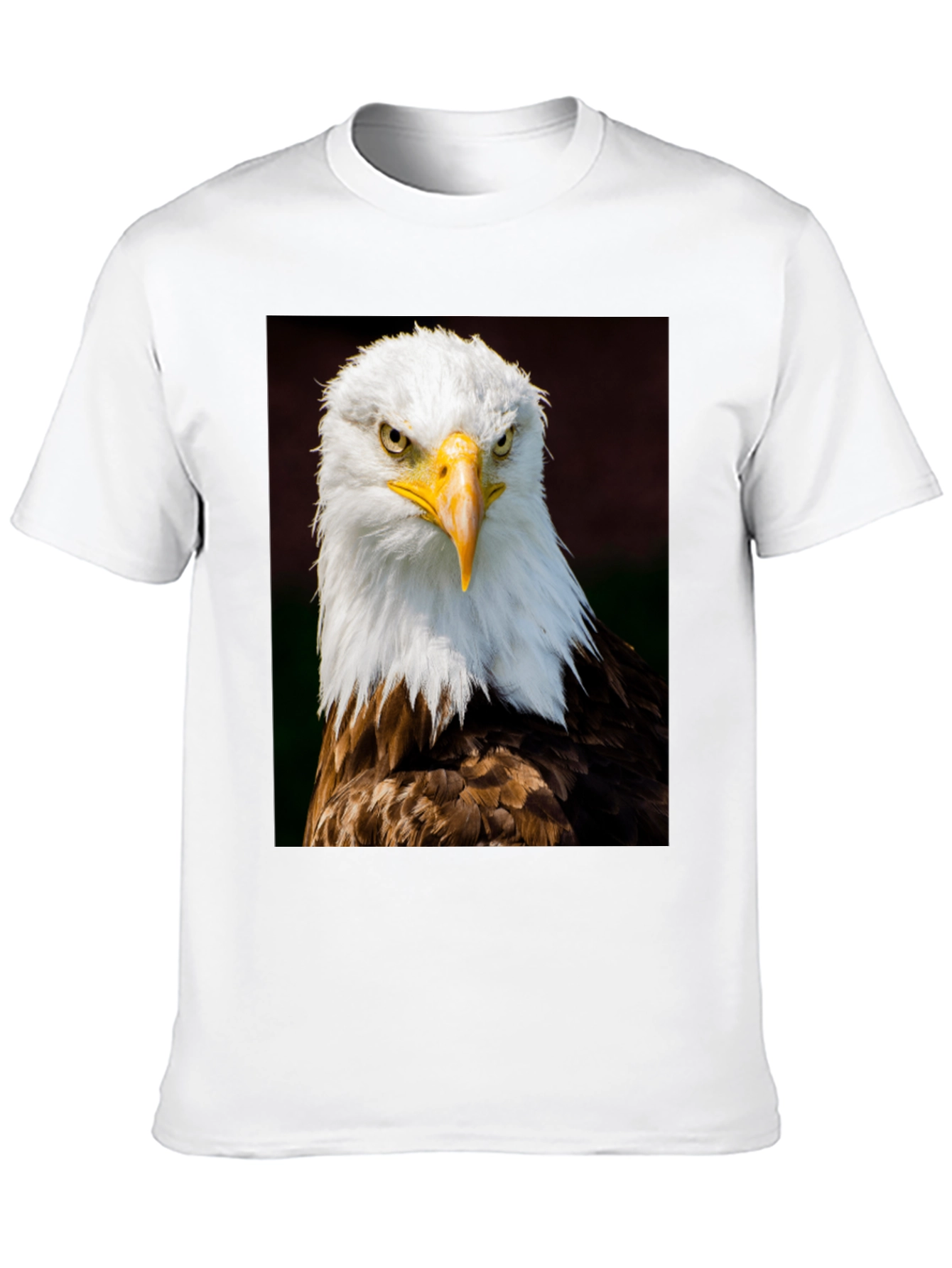 Showcase your patriotism with this striking black t-shirt featuring a vibrant, high-quality print of a majestic bald eagle. The bold graphic commands attention, making it a statement piece for any casual wardrobe. Crafted from a comfortable, breathable fabric, this tee is perfect for everyday wear. The classic crew neck and short sleeves offer a timeless fit, suitable for various occasions. Ideal for expressing your love for wildlife or celebrating American pride. A must-have for eagle enthusiasts and patriotic individuals alike.