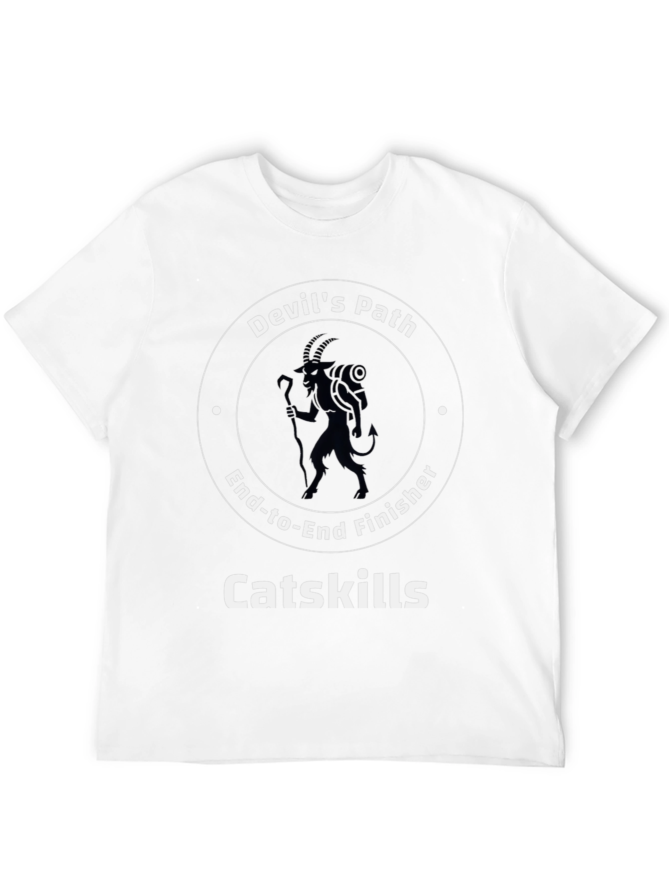 Conquer the trails in style with this striking black t-shirt! Featuring a unique "Devil's Path End-to-End Finisher" design, this shirt is perfect for outdoor enthusiasts and hiking aficionados. The central graphic showcases a detailed silhouette within a circular frame, emphasizing accomplishment. The text "Catskills" is prominently displayed. Made from comfortable, breathable fabric, this tee is ideal for your next adventure or casual wear. Show off your love for hiking and the Catskills region with this standout piece. A must-have for anyone who has conquered the Devil's Path!
