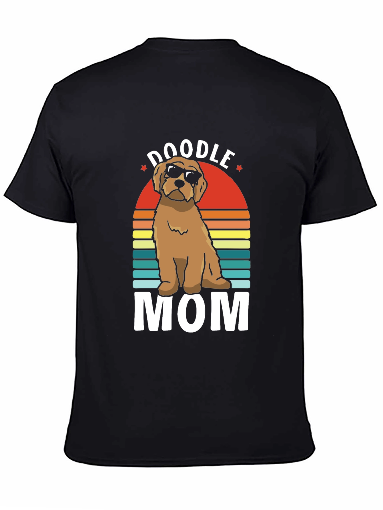 Show off your love for your furry friend with this adorable "Doodle Mom" t-shirt. The black tee features a cartoon graphic of a golden doodle wearing sunglasses, set against a retro sunset background. The words "Doodle Mom" are printed in bold white lettering beneath the dog. Made from a comfortable, breathable fabric, this t-shirt is perfect for casual wear, dog walks, or simply relaxing at home. It's a great gift for any dog mom who loves their doodle! Available in various sizes. Add a touch of canine charm to your wardrobe!
